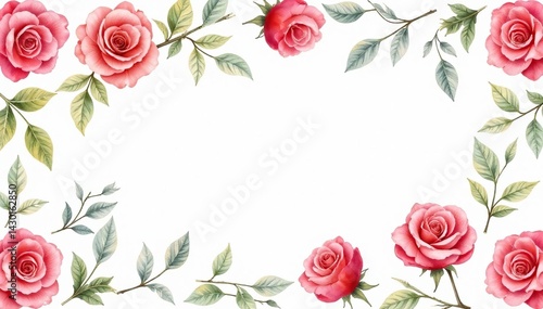 Delicate watercolor roses & leaves, repeating seamlessly , background, floral, illustration