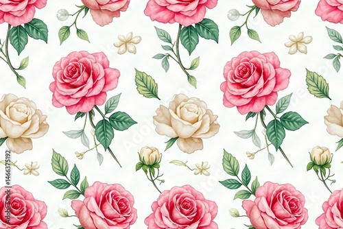 Delicate watercolor roses, intertwined leaves, seamless repeat , pattern, seamless, blossom