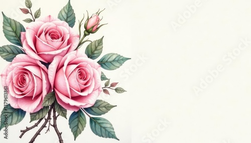 Delicate watercolor roses, intertwined leaves, soft pastel hues , watercolor, summer