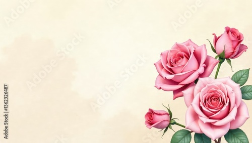 Delicate watercolor roses on a cream background, backdrop, elegant