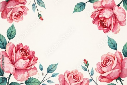 Delicate watercolor roses repeat across soft background , pink, vintage
