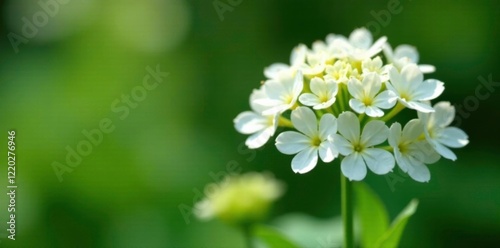 Delicate white blooms adorn a lush Pentas plant stem, , garden