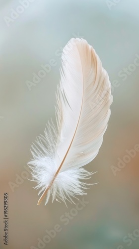 Delicate White Feather on a Soft Background.