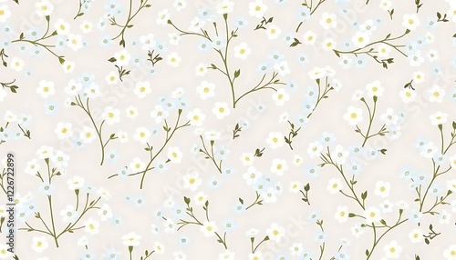 Delicate White Flowers Seamless Pattern Design