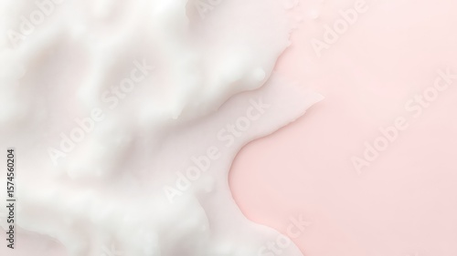 Delicate white foam spills across a pastel pink backdrop, creating a soft and visually appealing abstract texture.