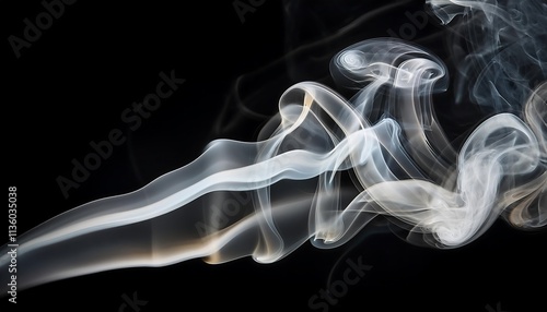 Delicate white smoke wisps swirling and rising against a dark background creating an ethereal atmosphere. Generative AI