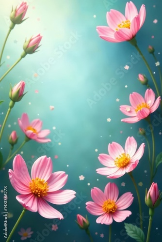 Delicate wildflowers encircle a blank space, soft focus , wildflowers, photo, spring border