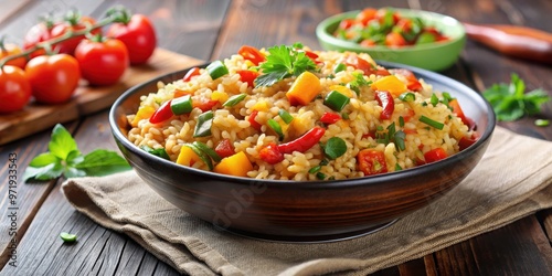 Delicious and colorful stewed rice and veggies dish , flavorful, stew, rice, vegetables, food, meal, vegetarian, healthy