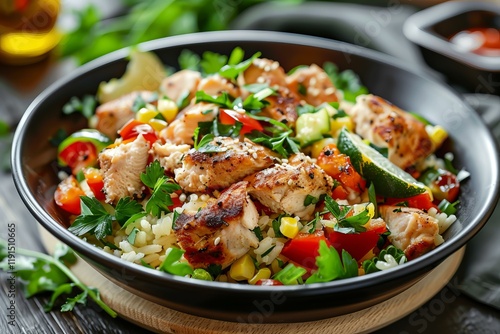 Delicious and healthy grilled chicken breast with rice and vegetables creating a vibrant and nutritious meal