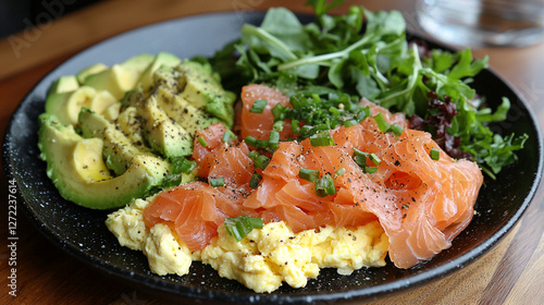 Delicious and Nutritious Breakfast Plate with Salmon and Avocado Delight