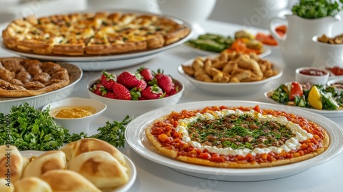 Delicious Array of Colorful Dishes on White Table Setting