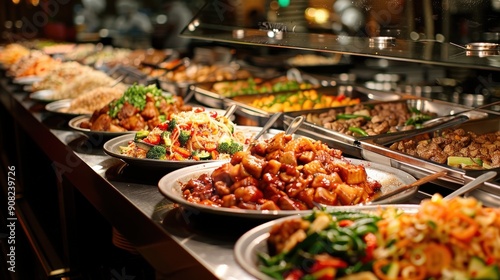 Delicious Array of Dishes at a Chinese Restaurant Buffet in Evening