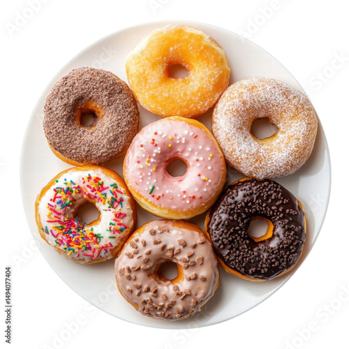 Delicious Assorted Donuts on a White Plate for Sweet Treat Lovers on transparent background