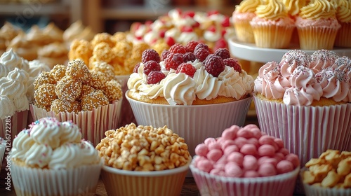 Delicious assortment of cupcakes, popcorn, and sweets.