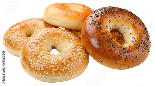 Delicious assortment of fresh bagels with sesame and poppy seeds for bakery breakfast lovers
