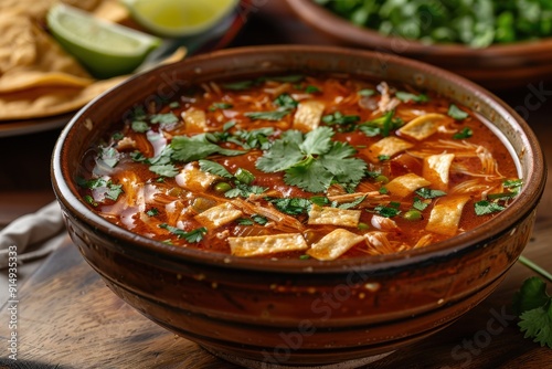 Delicious Authentic Mexican Tortilla Soup with Fresh Cilantro and Lime Wedges