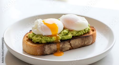 Delicious avocado toast topped with poached eggs, showcasing a simple yet elegant breakfast or brunch option for food enthusiasts