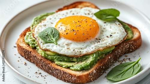 Delicious avocado toast topped with sunny-side-up egg for a cheerful breakfast treat