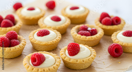 Delicious bakery dessert plate with raspberry and strawberry cupcakes