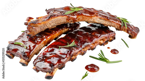 Delicious bbq ribs with rosemary on transparent background