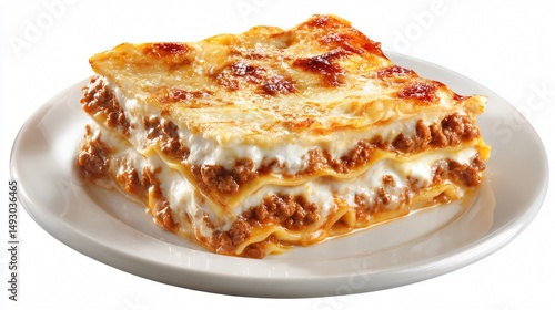 Delicious Beef Lasagna on White Plate Isolated on Background for Food Lovers