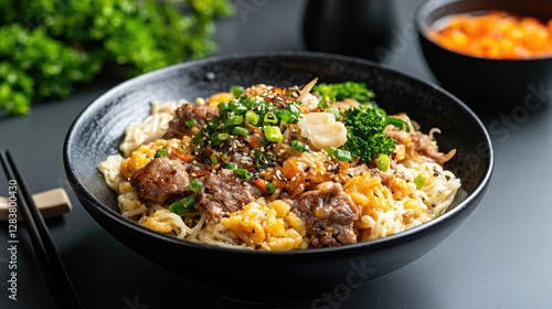 Delicious Beef Noodles Dinner, Asian Cuisine, Dark Background, Food Photography, Stock Image