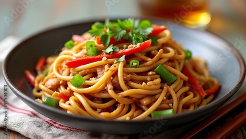 Delicious Bowl of Noodles with Fresh Cilantro Garnish