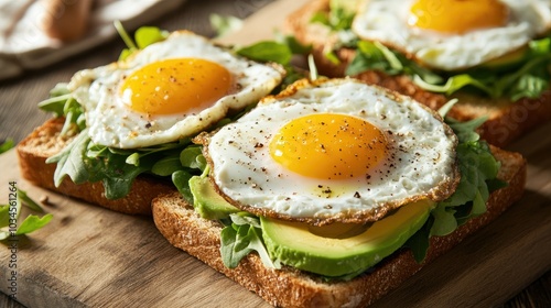 Delicious Breakfast Toast with Eggs and Avocado Slices
