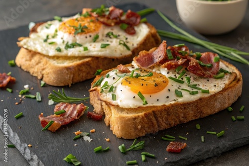 Delicious Breakfast Toast With Eggs and Crispy Bacon Served Generative AI