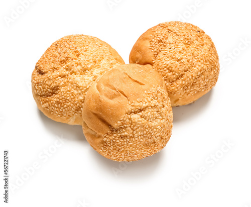 Delicious buns with sesame seeds isolated on white background