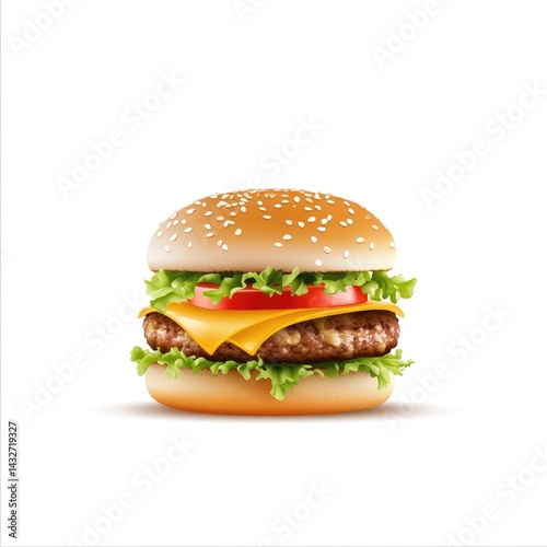 Delicious burger, studio shot, on white background