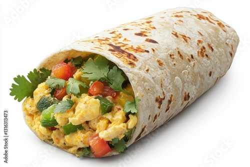 Delicious burrito with fresh ingredients healthy filling and tortilla wrap on clear background studio shot