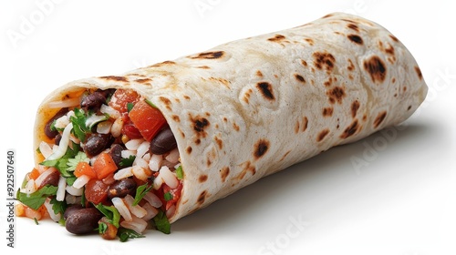 Delicious Burrito with Rice and Beans - Fast Food Editorial Photography in Professional Studio on White Background