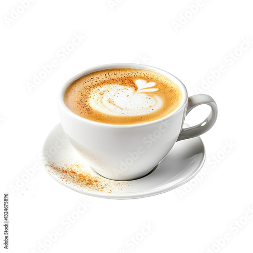 Delicious Cappuccino Coffee in White Cup with Latte Art, Cinnamon Sprinkle