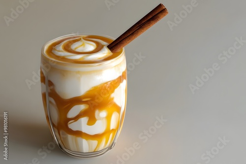 Delicious Caramel Latte with Whipped Cream and Cinnamon Stick