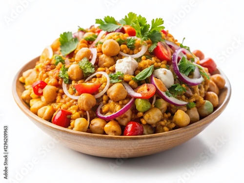 Delicious Chana Chaat Street Food on White Background - Indian Snack