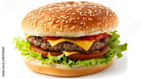 Delicious Cheeseburger on a Sesame Seed Bun with Fresh Vegetables