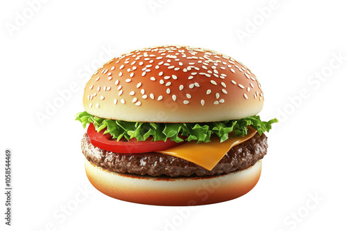 Delicious cheeseburger with a juicy beef patty, fresh lettuce, tomato, and melted cheese, served on a sesame seed bun. Perfect for a tasty meal.