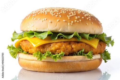 Delicious cheeseburger with chicken cutlet silhouette on white background