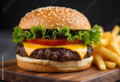 Delicious Cheeseburger with Lettuce, Tomato, and Fries