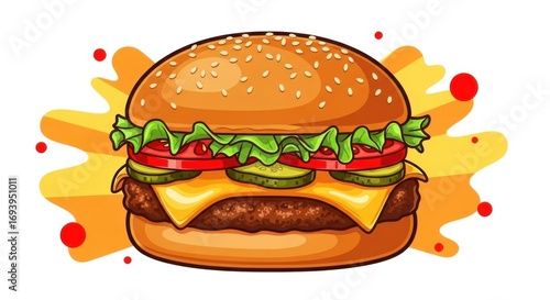 Delicious Cheeseburger with Toppings and Splash Background