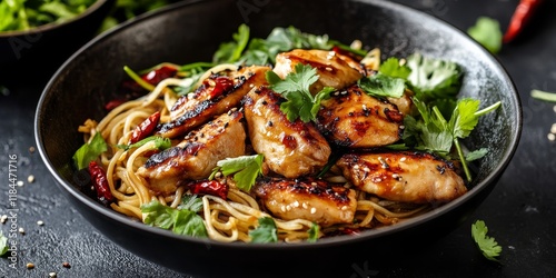 Delicious chicken and noodle dish prepared in a wok pan, showcasing vibrant ingredients and savory flavors. This chicken and noodle dish is perfect for a quick and satisfying meal.