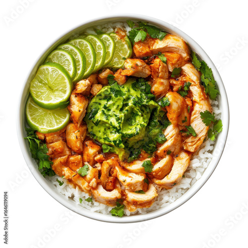 Delicious Chicken Bowl with Cilantro Lime Rice and Avocado Sauce, Perfect for a Flavorful Meal on transparent background