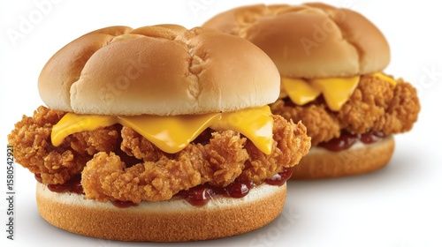 Delicious chicken sandwiches topped with cheese and barbecue sauce, perfect for any meal.