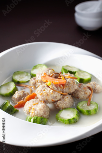 Delicious Chinese food, Luffa meatball soup