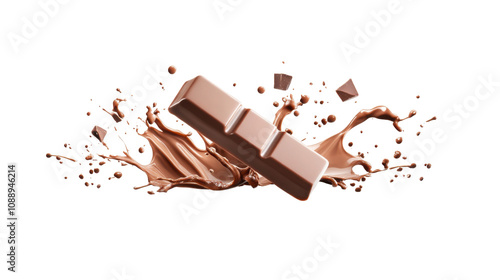 Delicious chocolate bar splashing in creamy cocoa liquid on a transparent background