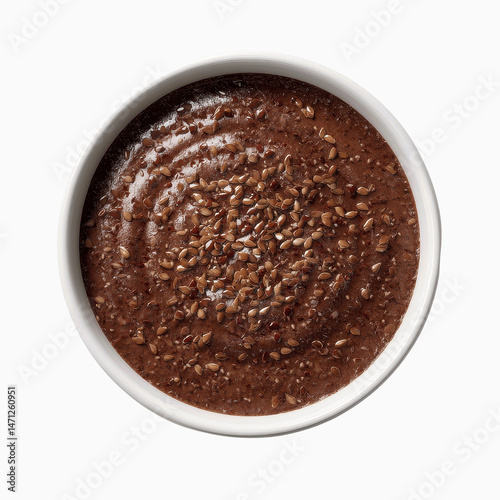 Delicious Chocolate Chia Seed Pudding with Sesame Seeds in a White Bowl