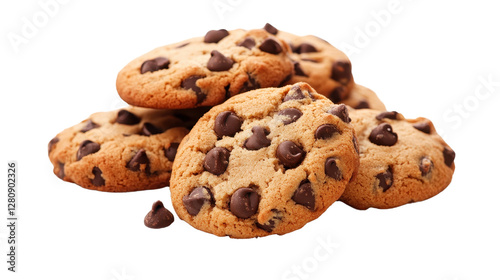Delicious chocolate chip cookies, fresh baked golden treats with gooey chocolate chips, perfect for sharing or enjoying solo. Isolated on white background or PNG