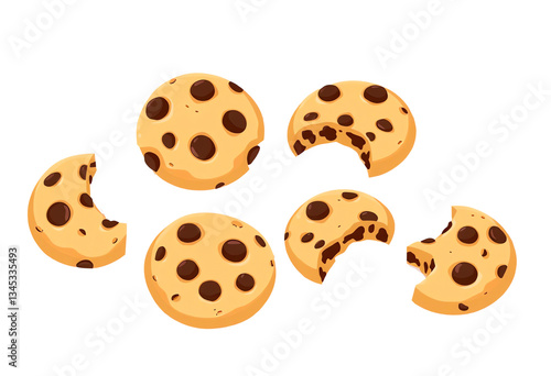 Delicious Chocolate Chip Cookies with Bites Isolated on Transparent Background