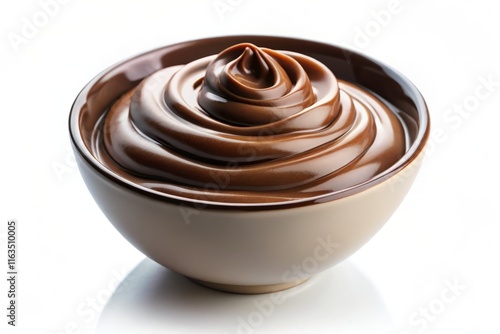Delicious Chocolate Cream in Bowl, Isolated on White Background - Stock Photo